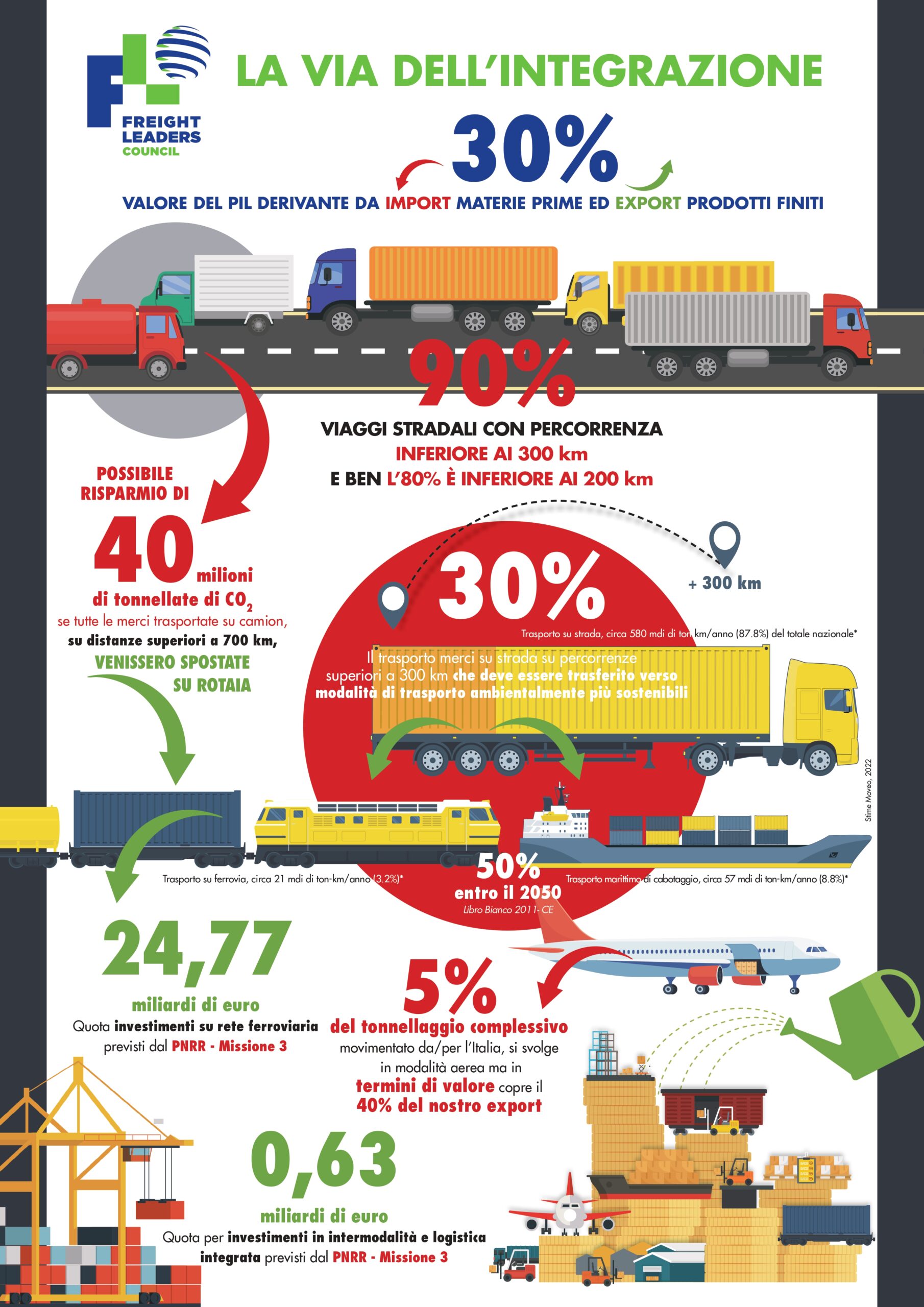 Una logistica efficace e sostenibile è fondamentale per migliorare la competitività del sistema produttivo italiano, in cui le esportazioni rappresentano il 30% del PIL. Pertanto, diventa cruciale non solo recuperarne l’efficienza, ma farlo seguendo percorsi di sostenibilità e resilienza. In questo contesto, il Quaderno numero 31 dell’associazione Freight Leaders Council (FLC), “Multimodalità: più efficienza, meno costi, maggiore velocità di consegna”, presentato giovedì 19 ottobre nel corso del convegno che si è tenuto presso il Dipartimento di Scienze Giuridiche del Linguaggio, dell’ Interpretazione e della Traduzione dell’Università di Trieste, propone un approccio innovativo, basato sul concetto di “seamless freight transport system”, che coinvolge tutte le componenti dell’ecosistema logistico, andando oltre il semplice trasporto di merci o il mezzo di trasporto.