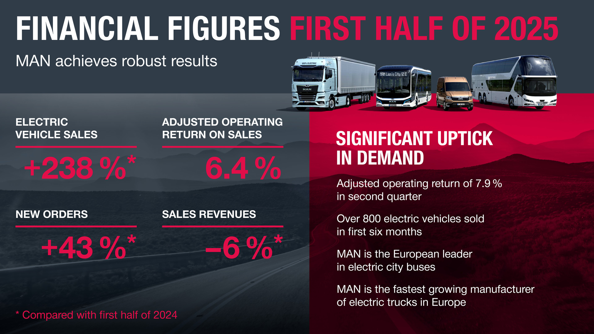 MAN Truck & Bus SE ha chiuso la prima metà del 2025 con risultati solidi, sostenuti in particolare da un secondo trimestre in miglioramento. La ripresa è stata favorita da un contesto di mercato più stabile e da misure di contenimento dei costi introdotte con tempestività.