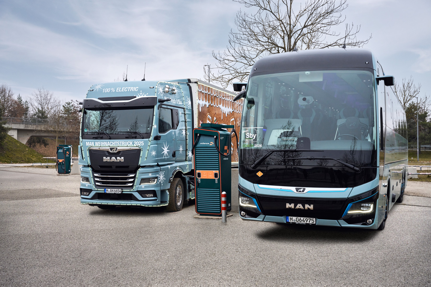 Il tour natalizio di MAN Truck & Bus si trasforma quest’anno in un simbolo concreto della transizione energetica nel trasporto pesante. La storica iniziativa del Christmas Truck ha fatto tappa all’Allianz Arena di Monaco per consegnare le prime due colonnine di ricarica destinate al futuro charging park per camion e autobus elettrici.