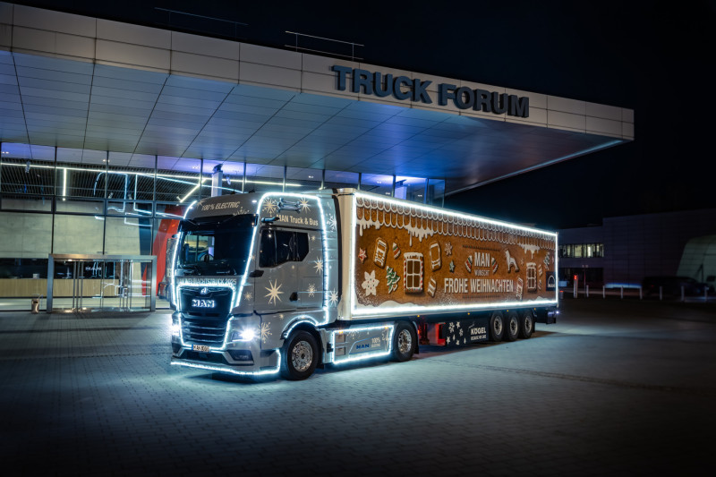 Il protagonista del tour natalizio MAN 2024 è però il truck stesso. In occasione del 20° anniversario dell’iniziativa, il tradizionale camion addobbato per le festività è per la prima volta completamente elettrico, basato su un MAN eTGX.