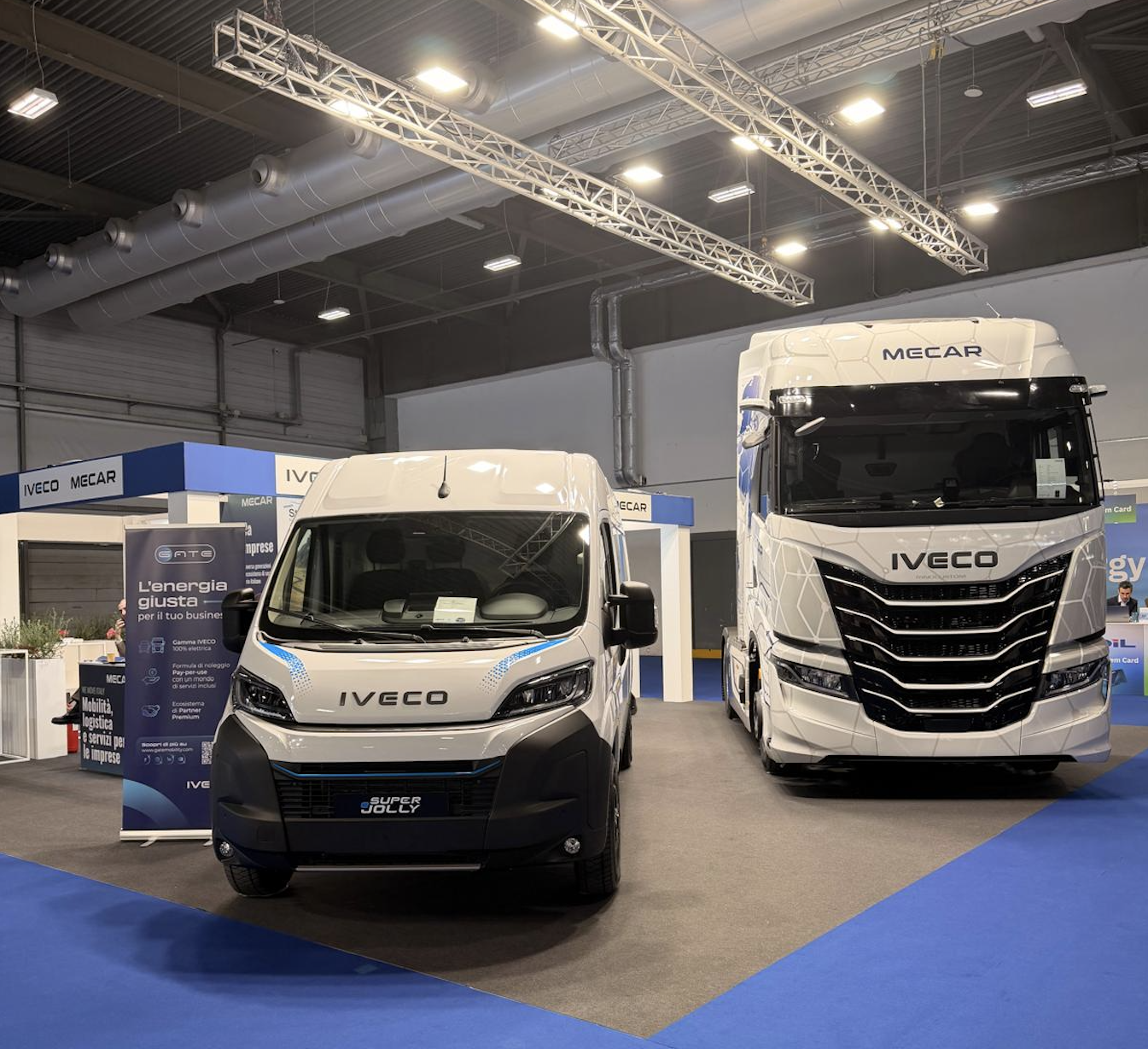 Nel quadro della partecipazione congiunta a LetExpo, GATE ha riaffermato il proprio impegno nella diffusione di soluzioni di mobilità a basse emissioni, presentando la propria formula di noleggio pay-per-use dedicata ai veicoli commerciali elettrici IVECO, sia leggeri che pesanti. A partire da dicembre, l’offerta si è ampliata con l’apertura dell’ordinabilità dell’eSuperJolly e del trattore stradale elettrico S-eWay, completando così una gamma capace di rispondere alle diverse esigenze operative. Protagonista dello stand Mecar e nuovo ingresso nella linea dei veicoli leggeri, l’eSuperJolly conferma la volontà di GATE di supportare le aziende nella transizione all’elettrico attraverso una proposta che integra il veicolo con i principali servizi necessari a garantire continuità, efficienza e semplicità nella gestione quotidiana delle attività.