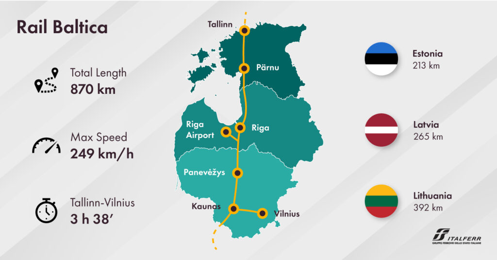La linea si svilupperà da Varsavia fino a Tallin, dove è previsto un futuro collegamento sottomarino fino a Helsinki. La società di ingegneria del Gruppo FS avrà il compito di supervisionare e coordinare il compimento dei sistemi di segnalamento e dei sottosistemi energetici, oltre ad avere cura della direzione lavori per la realizzazione della nuova linea alta velocità in Lettonia, 230 km a doppio binario.