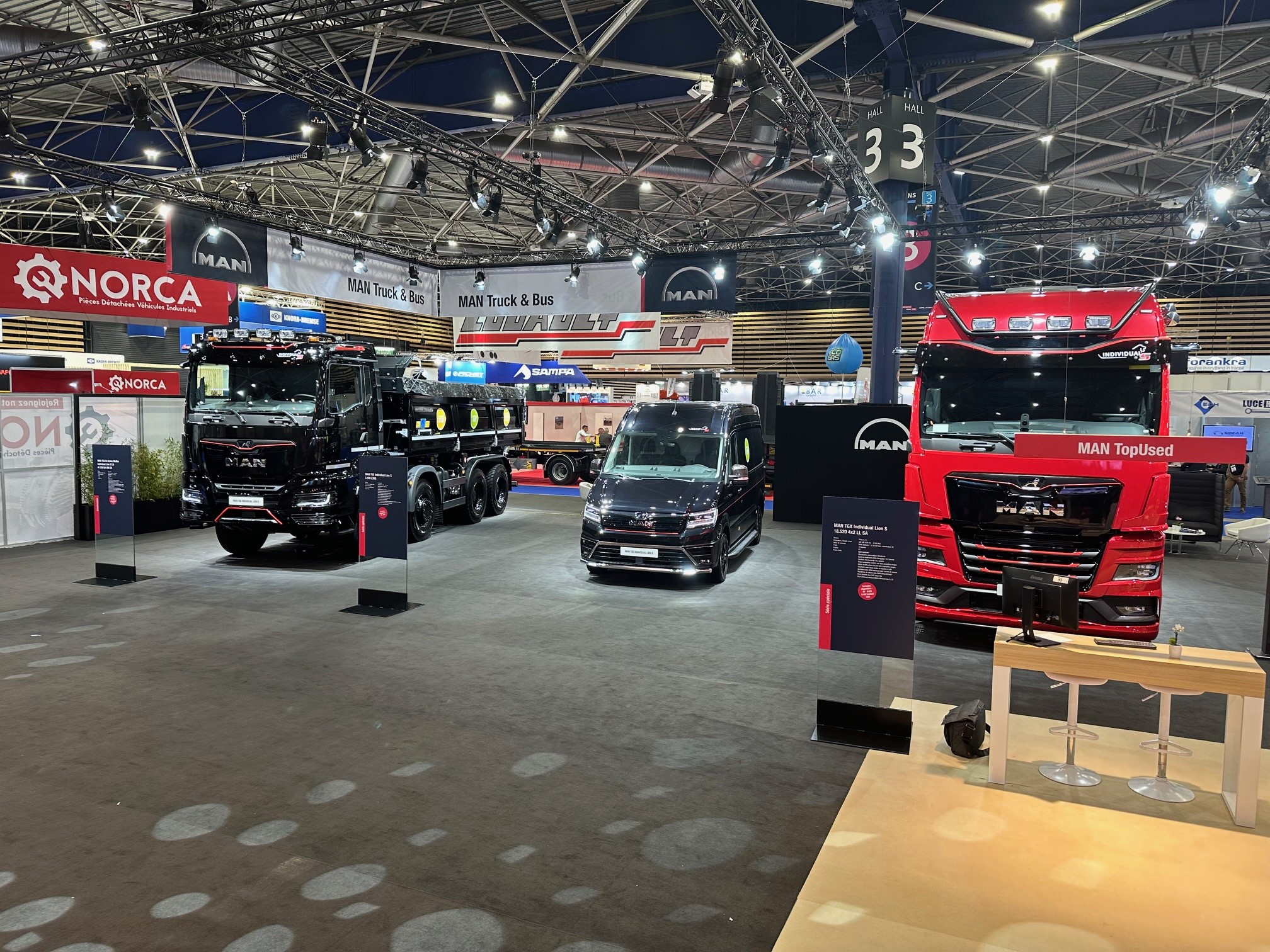 Presso lo stand sono esposti un totale di 6 veicoli, tra cui tre modelli della serie Individual Lion S: un MAN TGX Individual Lion S, un MAN TGS Individual Lion S e un MAN TGE Individual Lion S.
