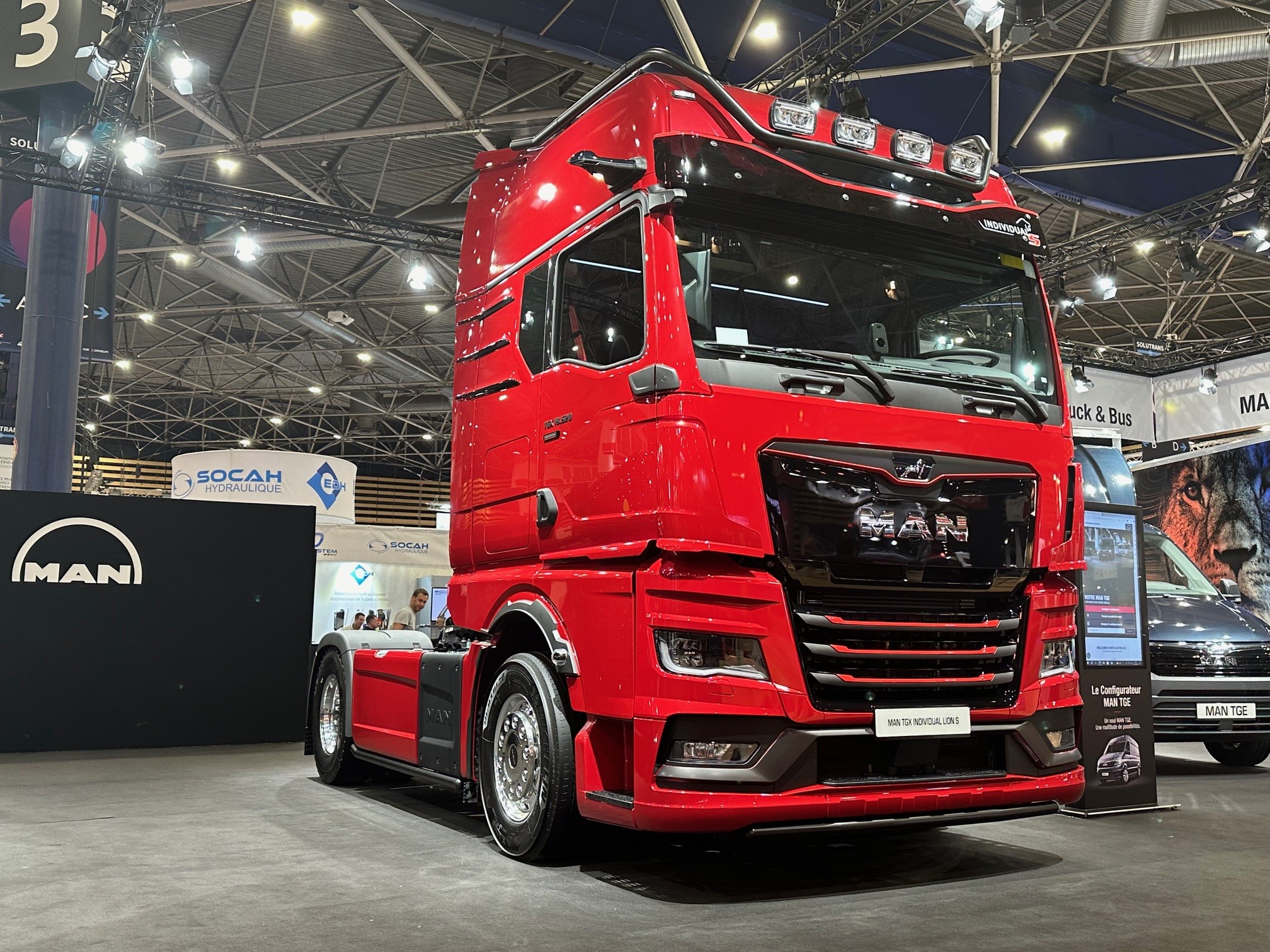 Al Solutrans 2023, in uno stand di 1.000 m2 dentro al padiglione 3 C011-C015, MAN Truck & Bus ha esposto, per la prima volta in Francia, la sua nuova gamma di camion elettrici: su tutti il MAN eTGX, nella sua versione di trattore a lunga percorrenza.